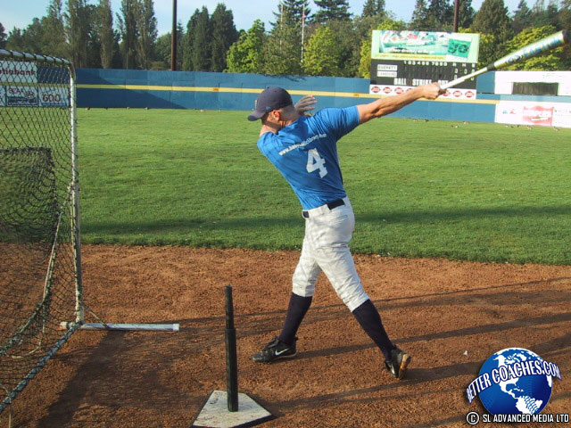 Imagine the pitcher out in front of you, follow the ball into the hitting zone, then complete the swing.