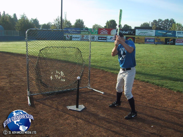 Place a batting tee approximately 3-4 feet away from a wall or screen.
